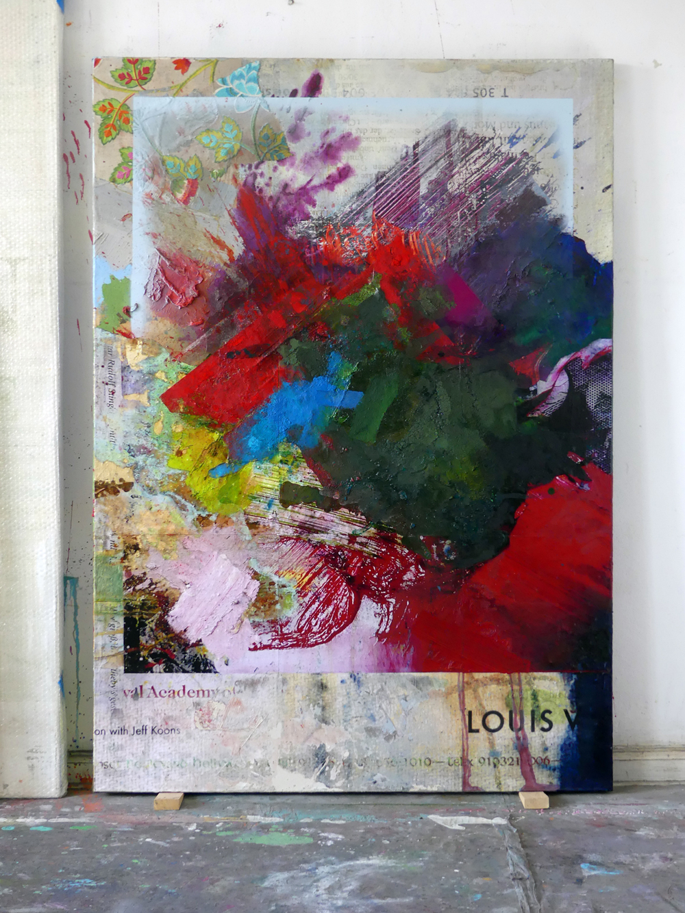 Die Bilder sind kraftvoll und expressiv. Jeder Malakt ist eine Setzung, die eine andere nach sich zieht und Abbildungen zum Verschwinden bringt. Das Digitale reflektiert dabei die Malerei als Möglichkeit, verhandelt sie, während sie im Analogen wirklich praktiziert wird. Die Bilder beziehen sich dabei auf die mediale Realität der Medien, dem Image, welches gemacht wird und die mediale Realität der Malerei.